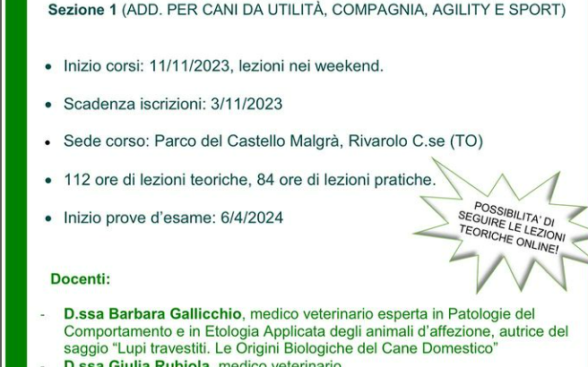 Corso per Addestratori cinofili ENCI 2025/2026